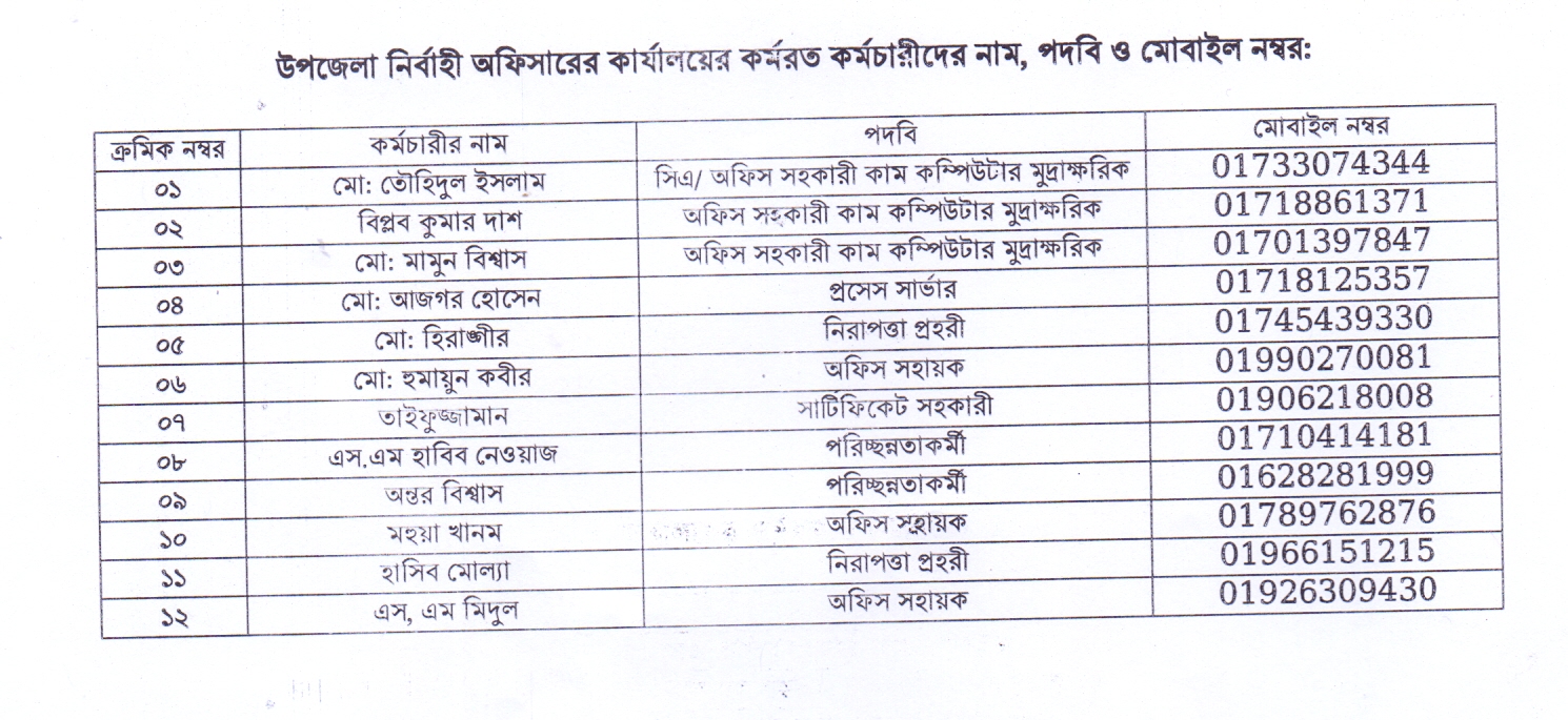 | 03 | Muhammad Ilyas Hossain | Office Assistant | 01716037170 |
